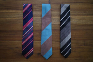 ストライプ柄の向きが右上がりや左上がりのラインになっているのは、生地をバイアスに裁断してネクタイにしているからです。 バイヤス裁断とは生地の縦横に対して斜めに裁断することをいいます。 日