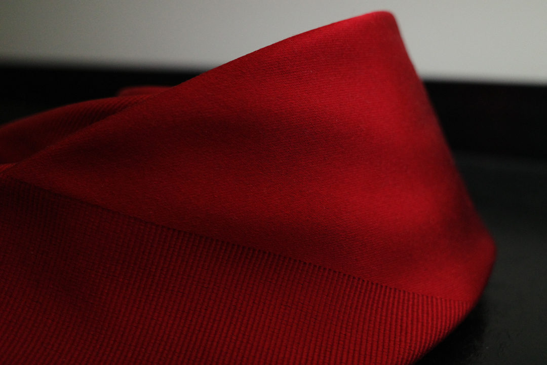 「経朱子」は経糸(たていと)が表に多く出ている朱子組織で、ネクタイ織機の経糸が1cmの間に100本くらい入っているので打込みを入れなくても光沢がきれいに出ます。
