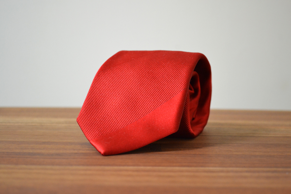 シンプルな中に重厚感や高級感を持った、真っ赤な勝負ネクタイとなっています。