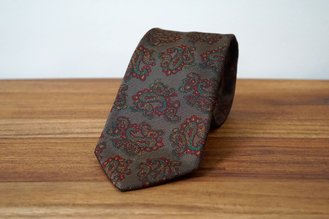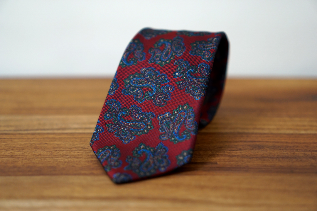 レトロな格好良さの中にエイトアンディの技術とこだわりが込められたペイズリーネクタイとなっております