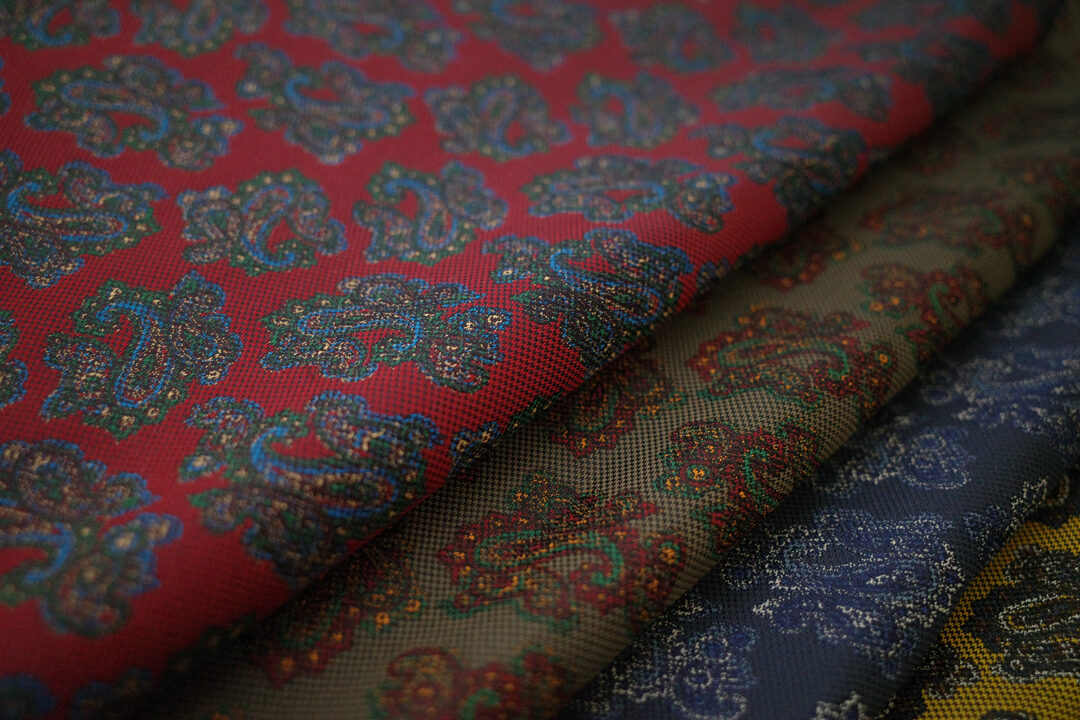 凹凸感を抑えるフラットな組織(織り方)を選び グラウンドだけではなくペイズリーにもその組織が入るようにしました